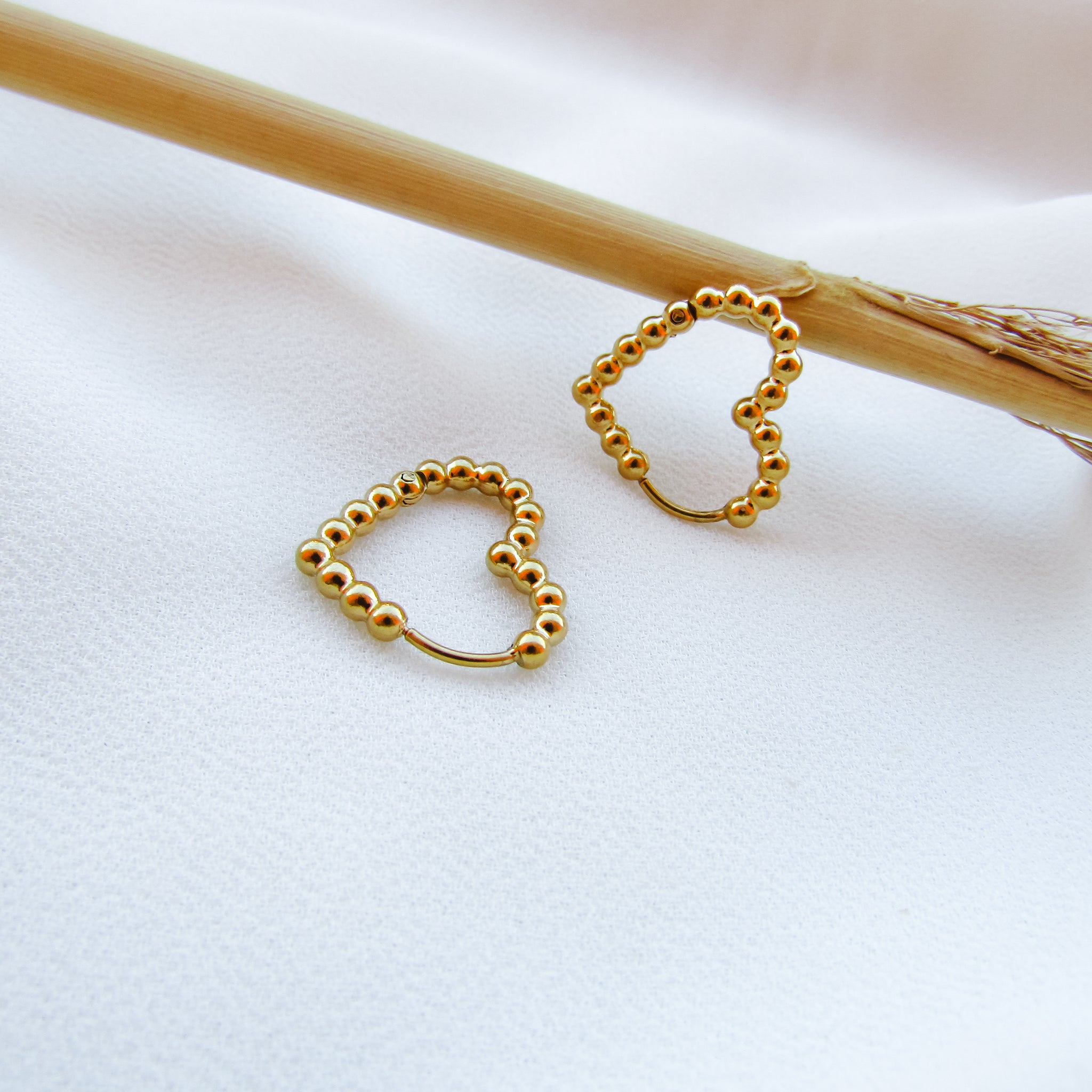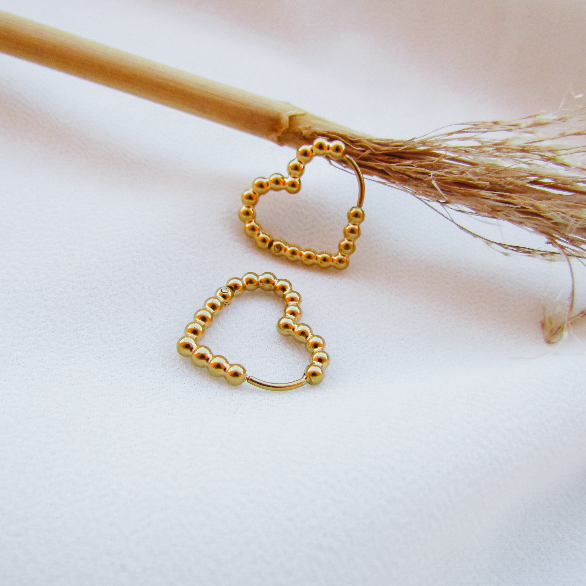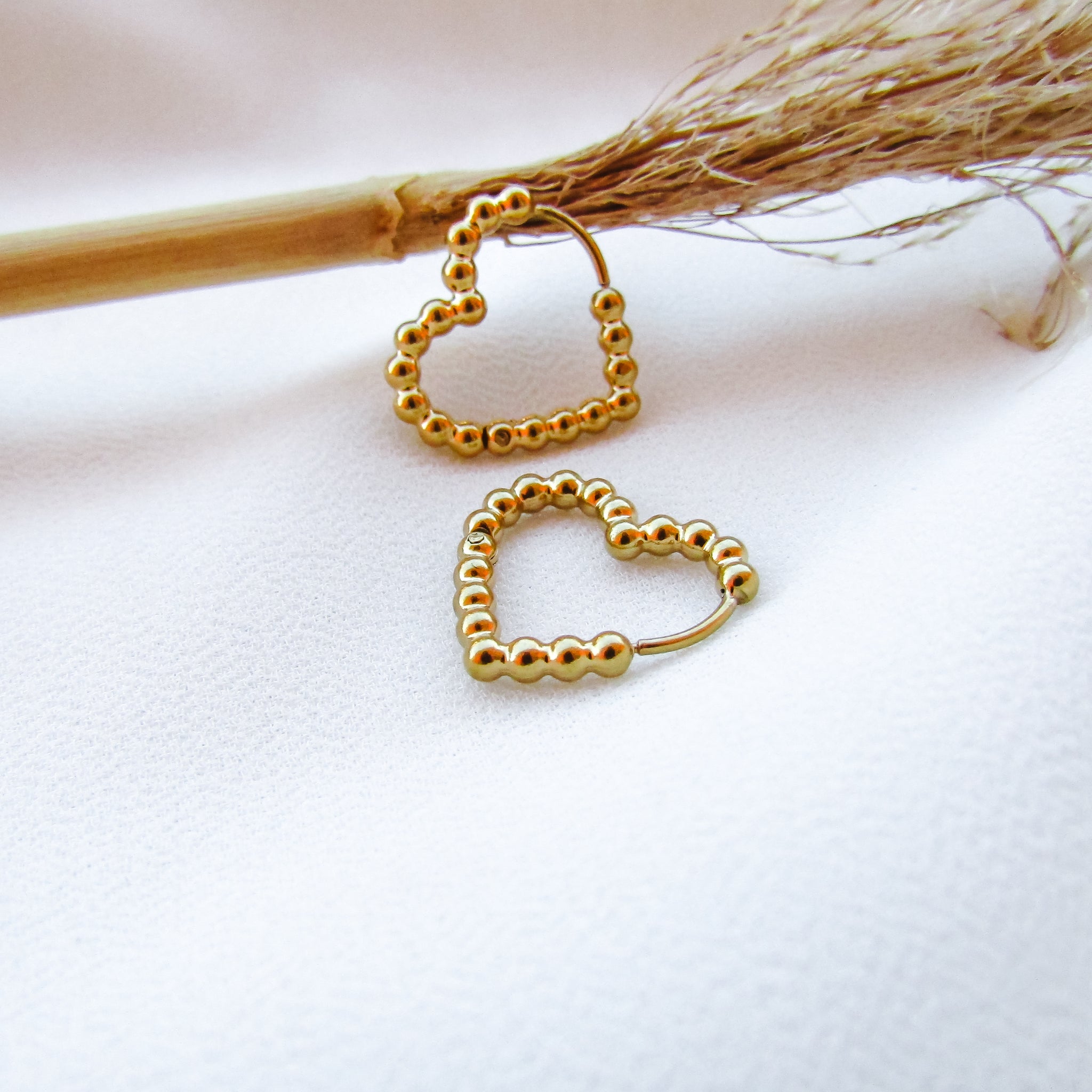 Orecchini a cerchio a forma di cuore in Acciaio Inossidabile 304L; sono perfetti per chi va di fretta o per chi preferisce uno stile minimalista e si adattano a qualsiasi look quotidiano.