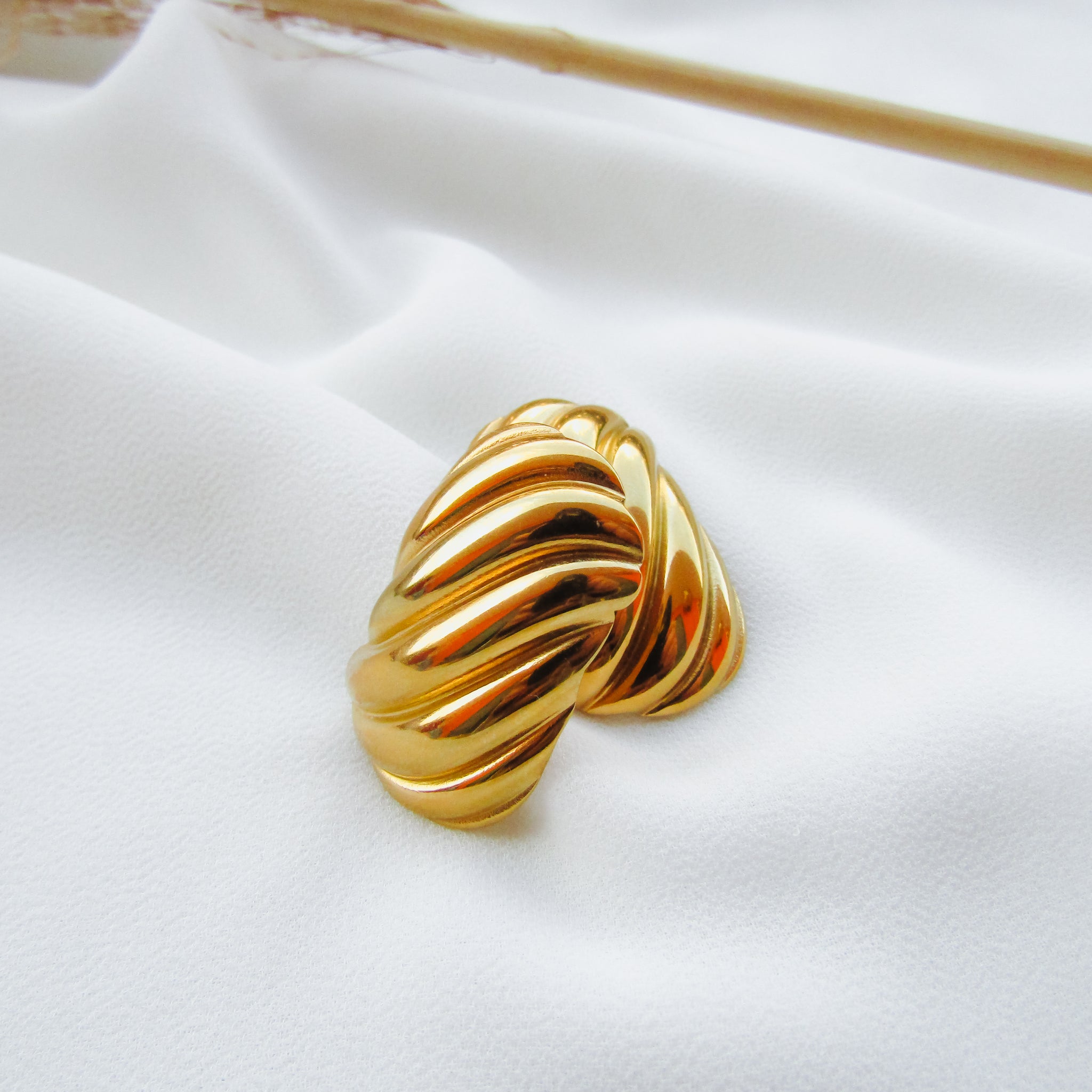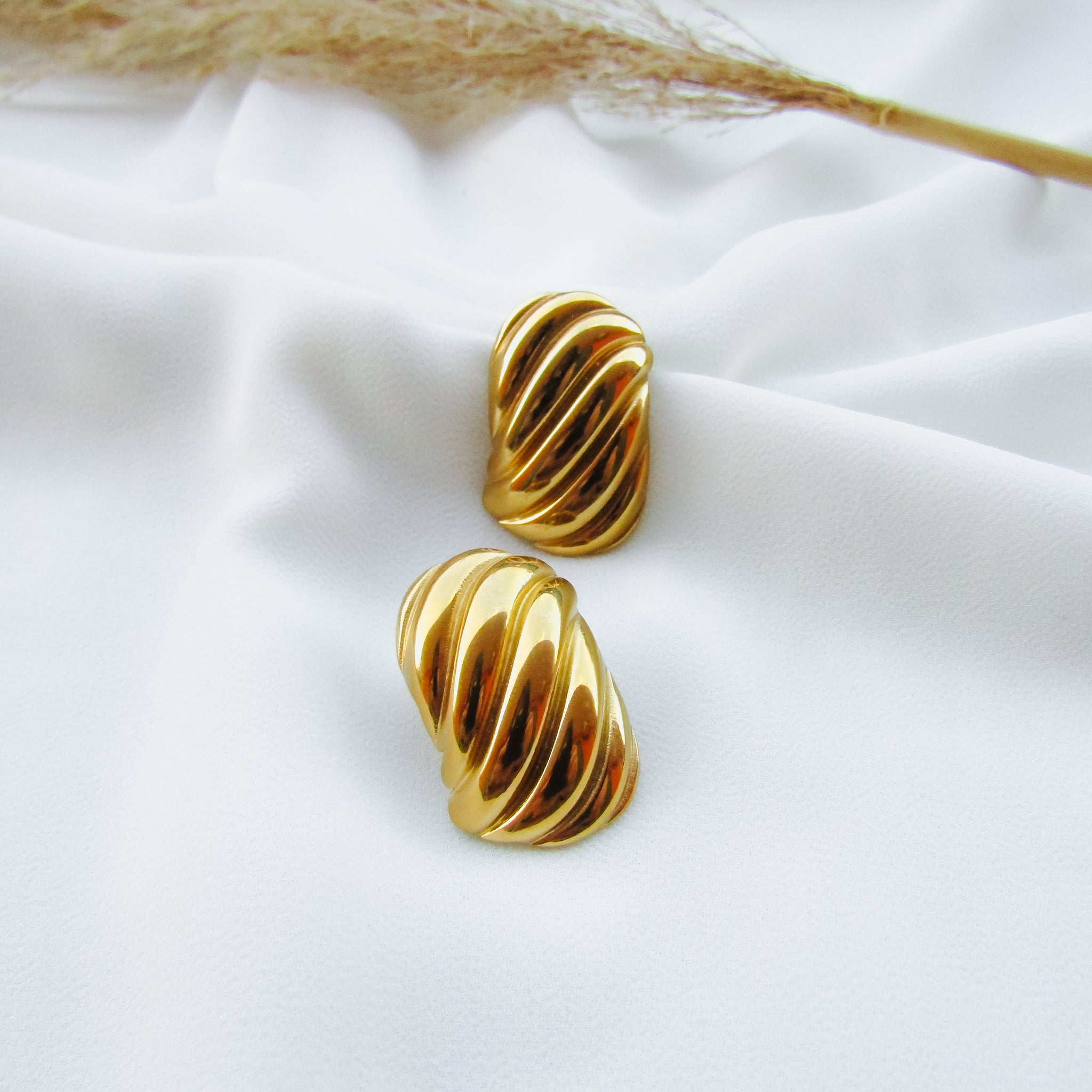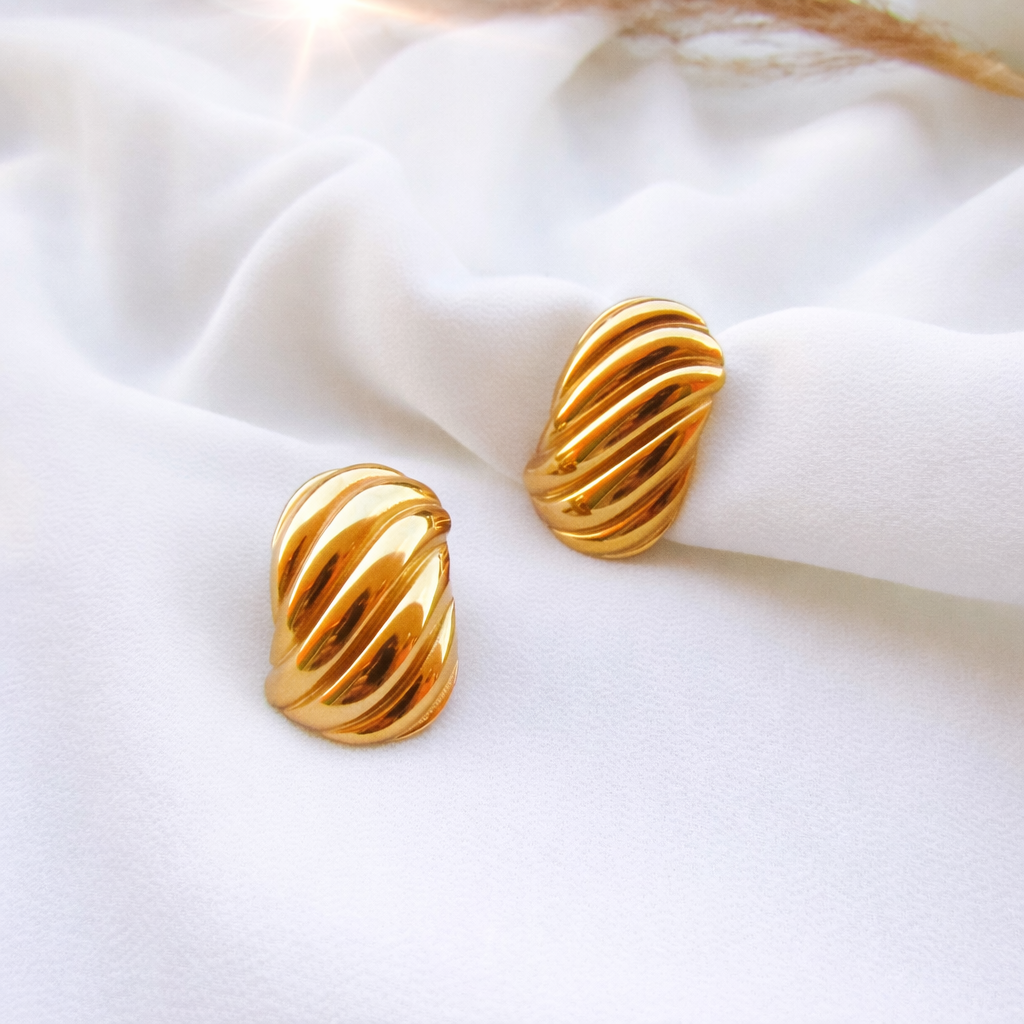 Orecchini rettangolari effetto onda in Acciaio Inossidabile 304L con placcatura oro 18k; sono perfetti per qualsiasi look, dal casual a quello serale elegante.