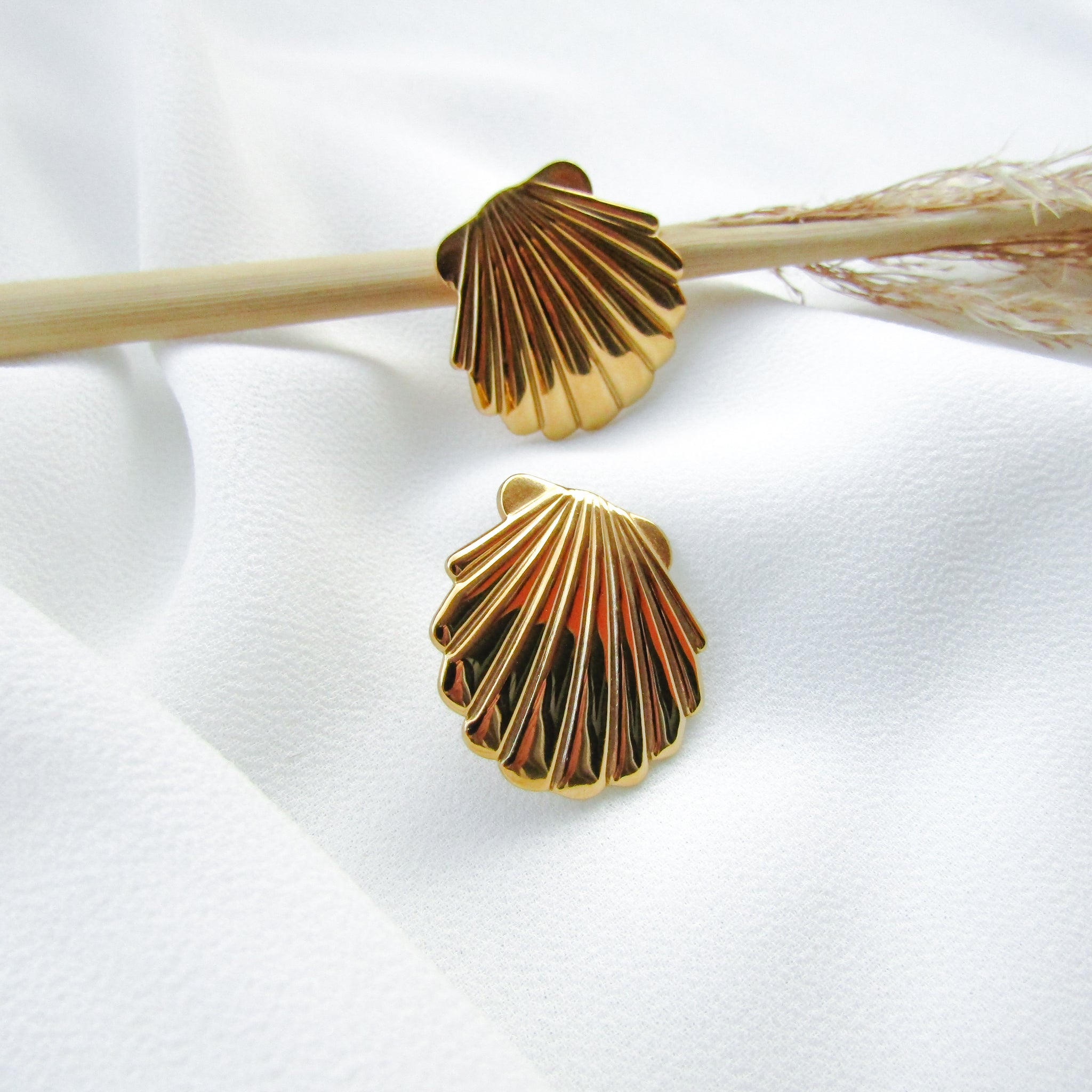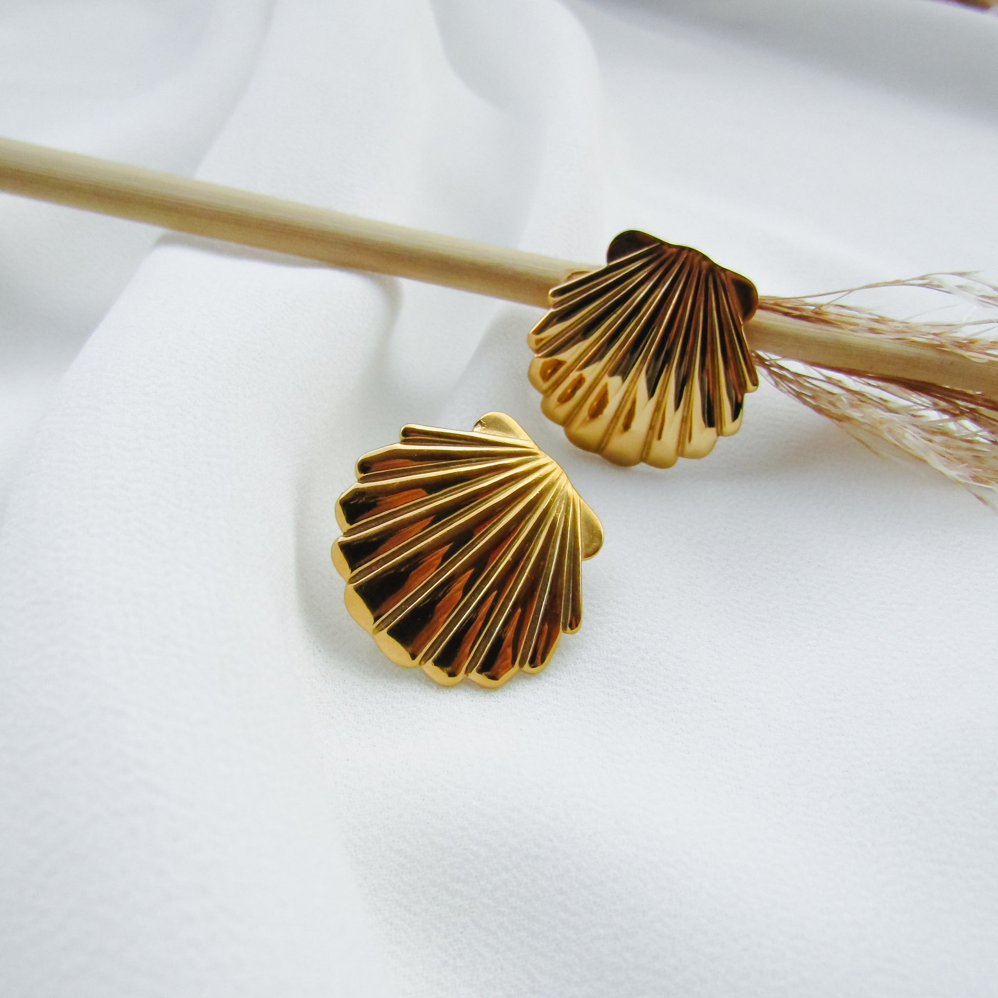 Orecchini a forma di conchiglia stile marino a perno in acciaio inossidabile 304L.
